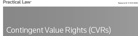 This Practice Note explains contingent value rights (CVRs), including their most common structures, key features of a CVR, and the advantages and disadvantages of using a CVR. This Note also identifies the principal securities, accounting, and tax considerations associated with CVRs.